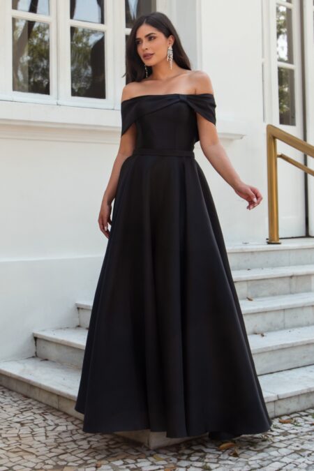 • 5813 – Vestido Kallina Zibeline ombro a ombro e saia rodada – 36 38 40 42 44 – Preto