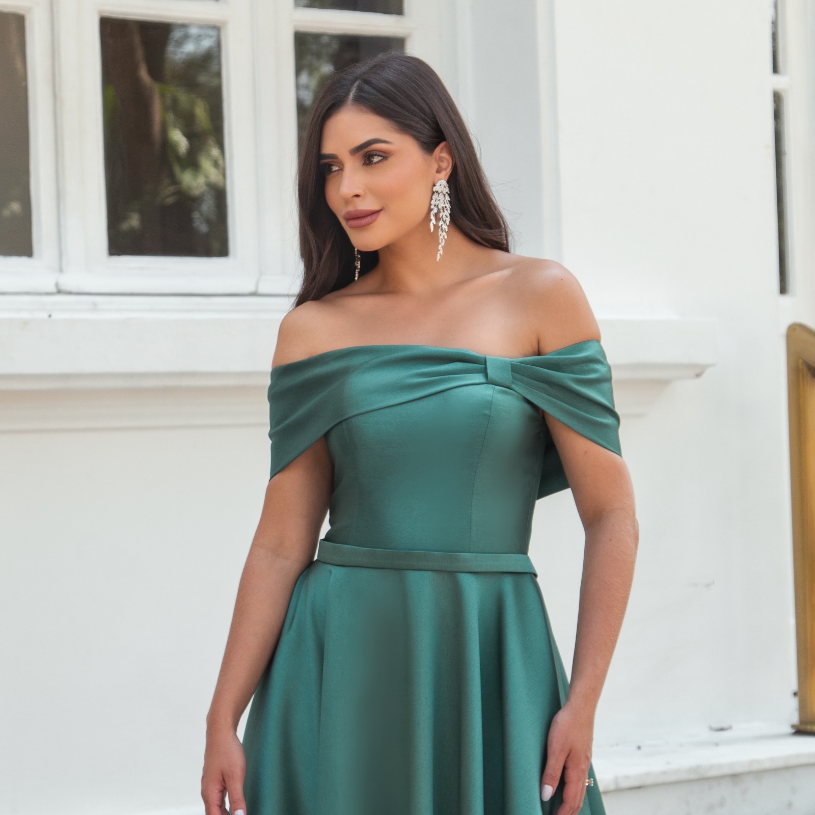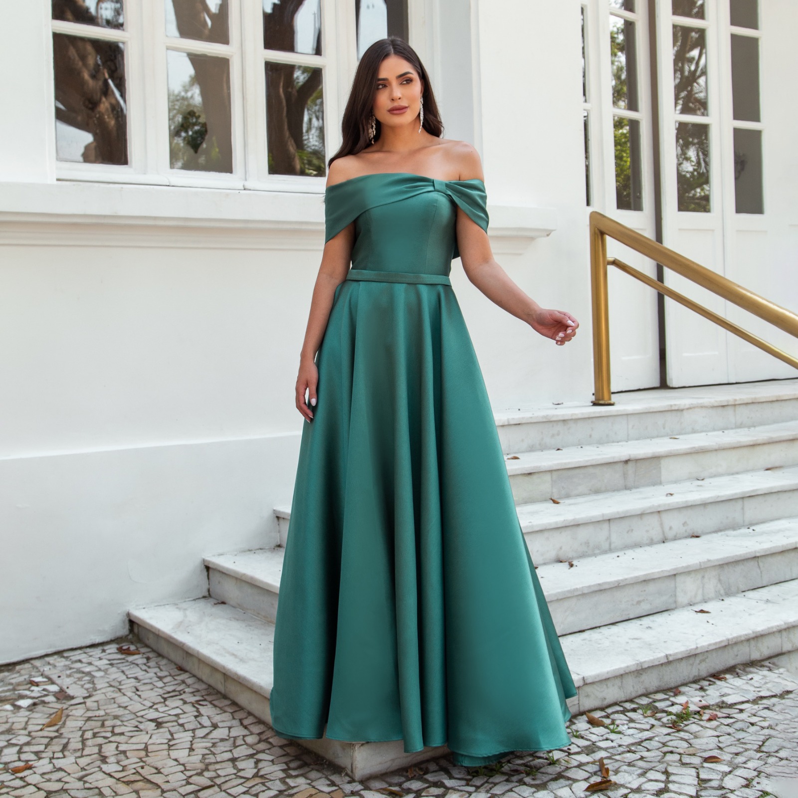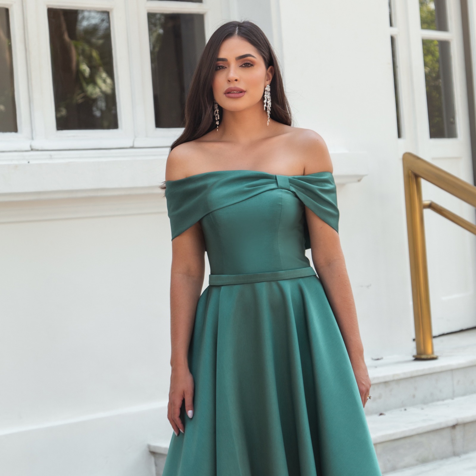 5813 – Vestido Kallina Zibeline ombro a ombro e saia rodada – 36 38 40 42 44 – Verde