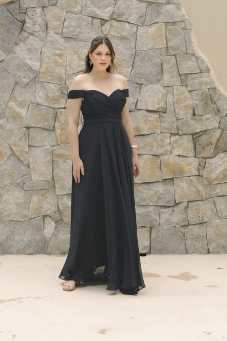 Vestido Leia Chiffon ombro a ombro e saia rodada
